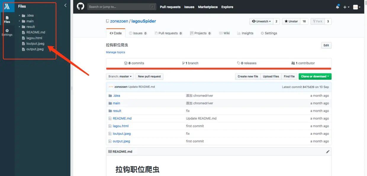 如图,就像这样,可以以文件树的方式浏览 github 的代码文件。