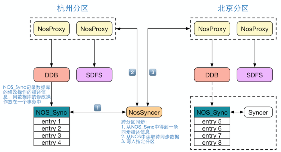 当一个桶配置了跨分区灾备的属性后,该桶的所有更新操作,均会记录在NOS_Sync表中(为了保证主从分区数据的一致性,写入NOS_Sync表必须同原更新操作放在一个事务中)