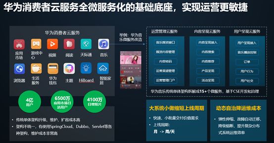 如果读者用的是华为手机,手机上的应用市场、浏览器、音乐、支付、负一屏、运动健康、智能家具等等背后都是运行在这套微服务框架之上,目前华为消费者云超过4亿用户。举这个例子主要是想说明华为的这套微服务解决方案也是经历超大规模流量这种应用场景洗礼过的,所以无论多大业务量规模,在性能、安全和可靠性上没有任何问题。