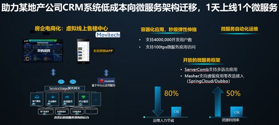 于是找到华为希望做微服务改造,但这个项目最大的困难是当前的CRM系统太庞大了,而且很多地方都是日积月累的不敢随意去动。后来我们针对性能做了深入分析,发现瓶颈主要是抢房这块相关的功能。于是我们把这块功能拆解出来单独做了微服务化改造,其他系统功都不动,只在边界部分做一个和新微服务交互的简单适配,这样把业务繁忙的微服务抽出来做适当的弹性就解决了性能问题,而且通过以微服务粒度按需的弹性还大大提升了资源利用率,这在以前,必须是以整个CRM系统大颗粒的弹性。