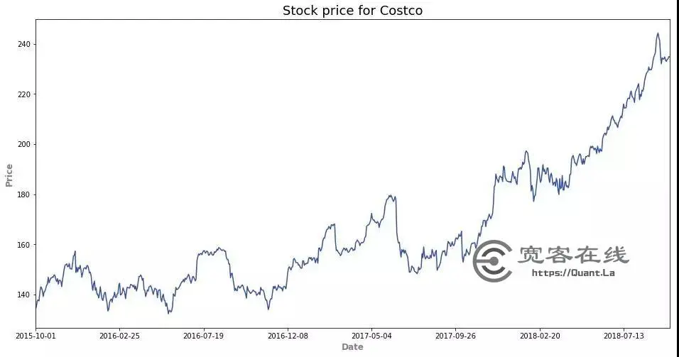 我们可以使用Costco标的从2015/10/1到2018/10/1, 使用pandas_datareader,我们可以快速读取股票价格。如下图: