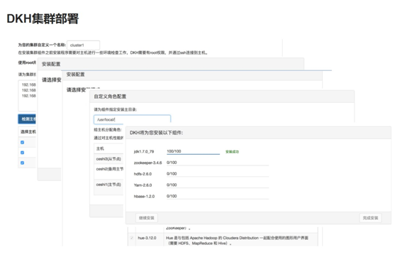 Hadoop运行环境的搭建就是初学者要解决的一个大问题,运行环境搭建不成功,也就无从着手学习了。各种发行版本的Hadoop运行环境的安装基本类似,但也不是全部都如此的复杂。主要还是发行方对hadoop原生态开发程度不同,导致了这样的差距。从运行环境安装方面来看,DKhadoop的集群部署安装可以说是比较简单的一个发行版本了。整个安装过程已经被高度的模块化,便捷性得到大大提升。对于初学者来说,不妨可以使用DKhadoop的发行版作为大数据学习的入门平台。