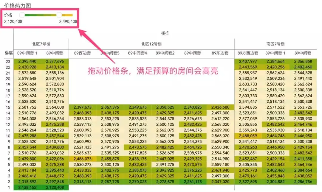价格热力图筛选房源