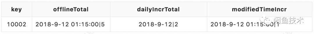 在闲鱼的实现中,我们采用KV存储的方式,来记录关系的变化情况。具体记录的值为:每一个source每一天的总增量dailyIncrTotal,以及每一次发生关系更新的那一时刻的增量modifiedTimeIncr,如下表: