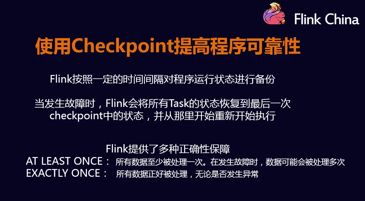 Flink也提供了一套机制,允许把这些状态放到内存当中。做Checkpoint的时候,由Flink去完成恢复。