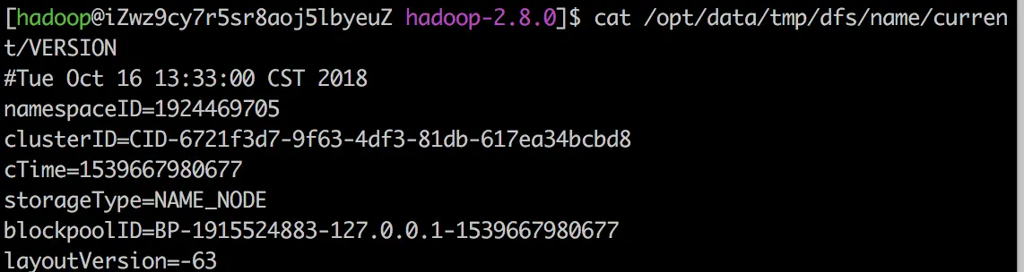 - VERSSION - 文件中保存着namespaceID:NameNode的唯一ID。clusterID:集群ID,NameNode和DataNode的集群ID应该一致,表明是一个集群。