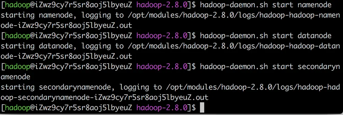 - 启动namenode、datanode、secondarynamenode
