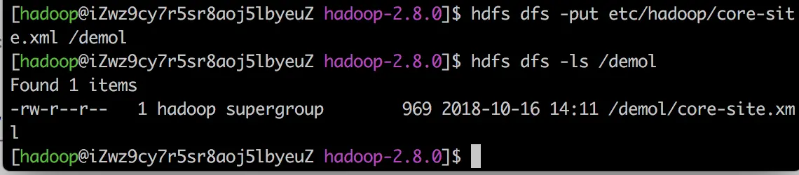 hdfs dfs -mkdir /demol