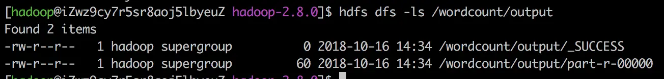 hdfs dfs -ls /wordcount/output