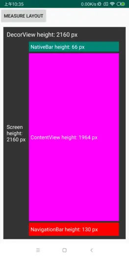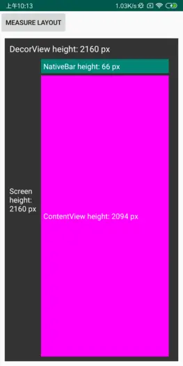 可以发现又出问题了,DecorView = Screen height > NativeBar height + ContentView height