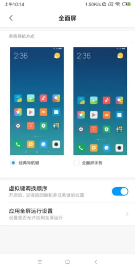 我们在MIUI设置中将全面屏导航样式修改为“经典导航键”样式。
