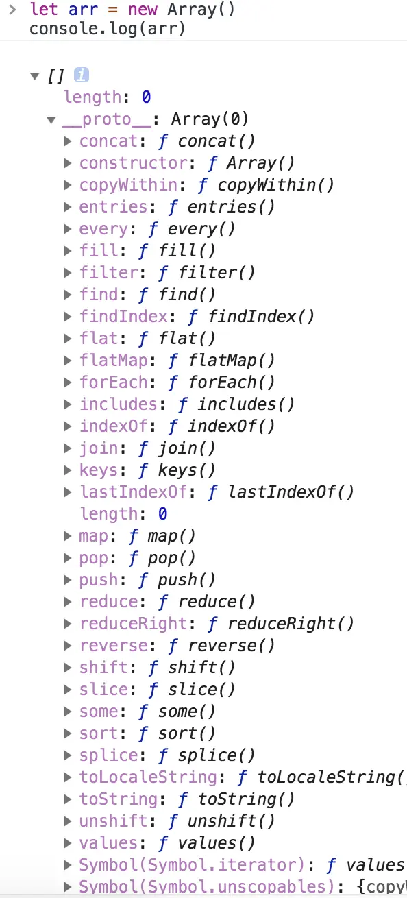 来看看由 Array 构造出来的 arr 有些什么属性和方法。