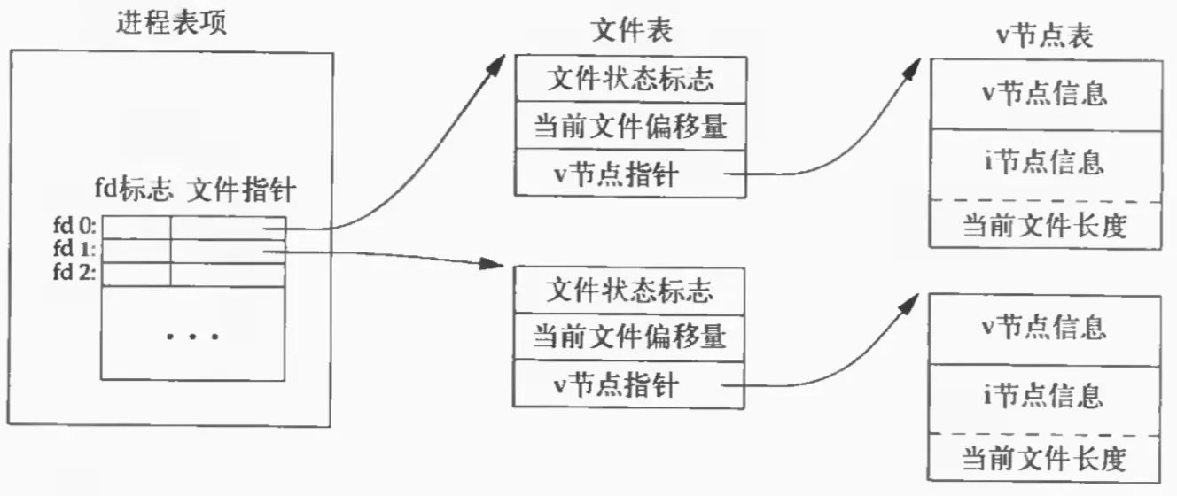 - 标准io打开一个文件(fopen函数)时,返回一个FILE的指针,它包含了实际io的文件描述符,指向用于该流缓冲区的指针,缓冲区长度,缓冲区当前字符数,出错标志,文件结束标志等信息