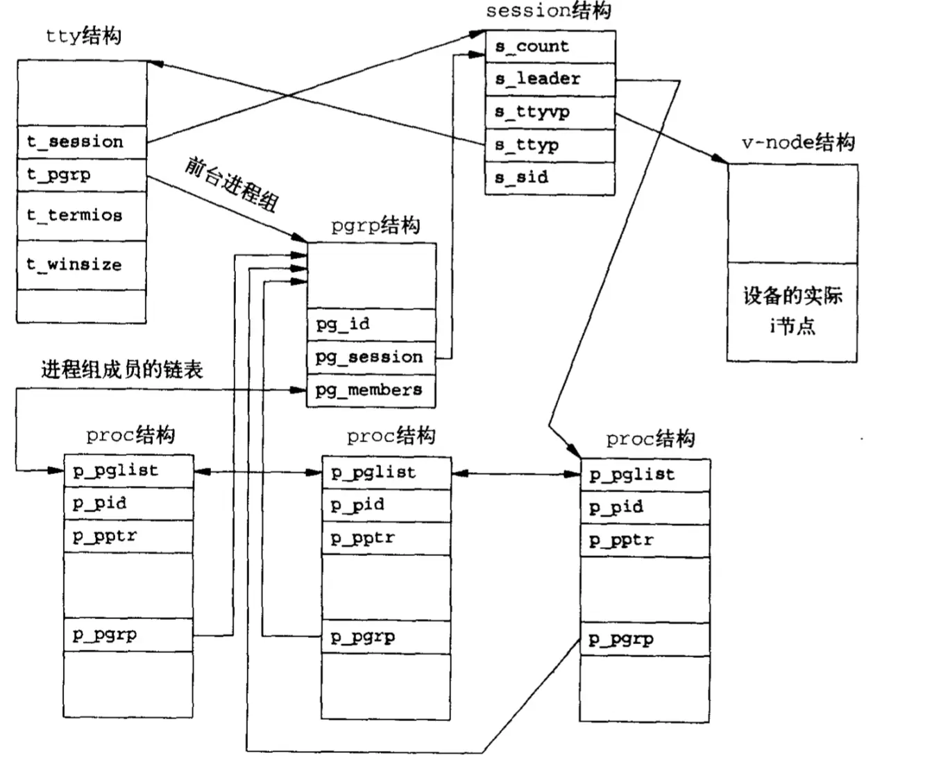 主要介绍进程之间的关系,包括:进程组,会话,控制终端。以及unix底层的数据结构如何建立他们之间的关系