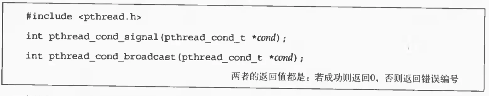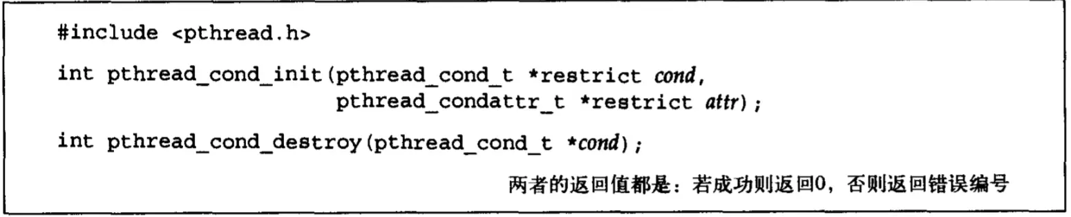 - 静态分配的变量:PTHREAD_COND_INITIALIZER