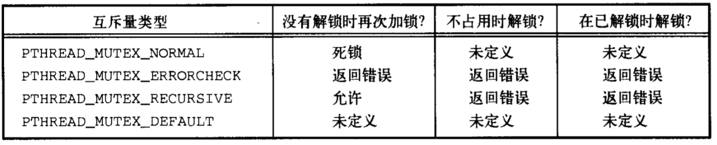 - PTHREAD_MUTEX_NORMAL:正常属性,不做特殊的错误检查或死锁检查