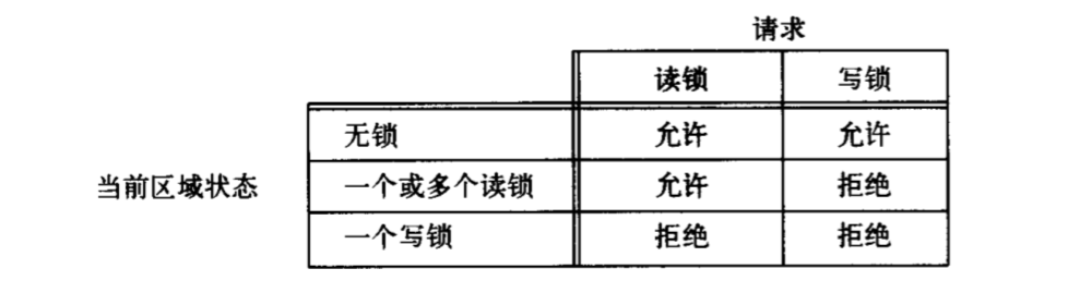 struct flock{ short l_type;//F_RDLCK共享读锁,F_WRLCK独占写锁,F_UNLCK解锁 off_t l_start;//加锁区域其实位置 short l_whence;//和start一起确定加锁位置 off_t l_len;//加锁长度 pid_t l_pid;//进程id } - 不同锁的兼容性:针对同一把锁。如果不同锁,新锁总是覆盖旧锁