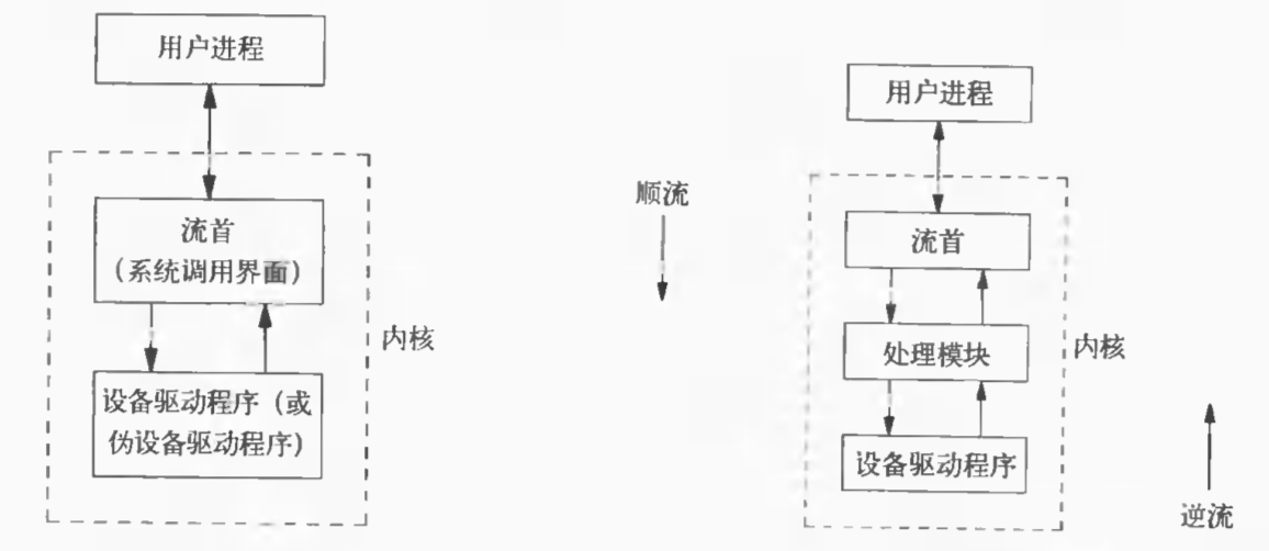 - 流在用户进程和设备驱动程序之间提供一条全双工通路,流无需和实际硬件设备之间会话