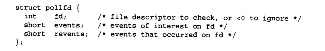 - 时间每个字段为0:完全不等待,测试指定的文件描述符并立即返回