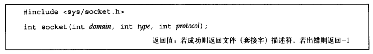 - protocol:协议,通常为0。表示根据套接字类型默认选择协议