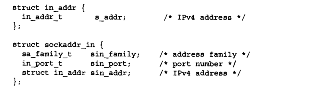 - ipv4套接字通用地址:<netinnet/in.h>,实现者可以自由添加额外字段