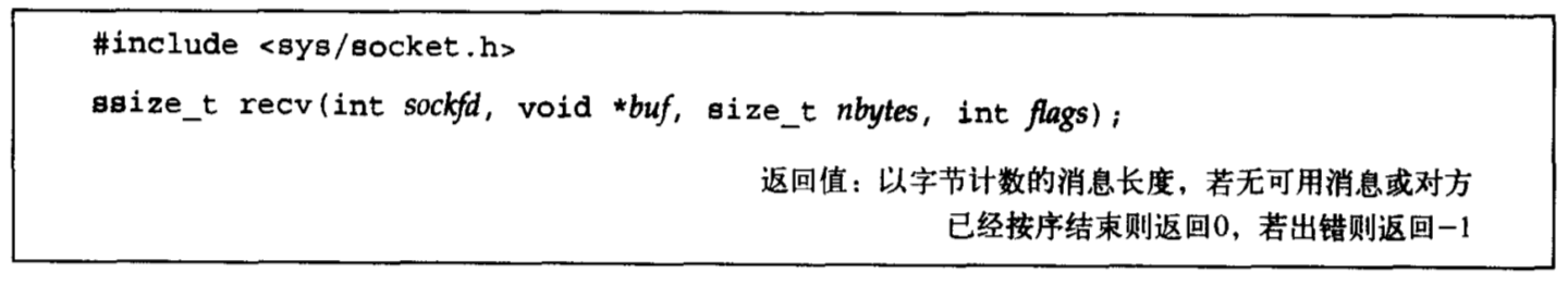 - recv比read多了第四个产生flags,用于控制如何接收数据