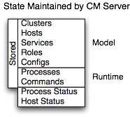 Cloudera Manager 为 CDH 建模以及管理服务:角色、配置以及内部依赖。模型告诉我们应该在什么地方运行什么以及使用什么样的配置。例如,模型状态捕获了一个事实,即一个集群包含17个主机,每个主机应该运行一个DataNode。你可以使用管理控制台的配置页或者 API 来操作模型,例如 "Add Service"。