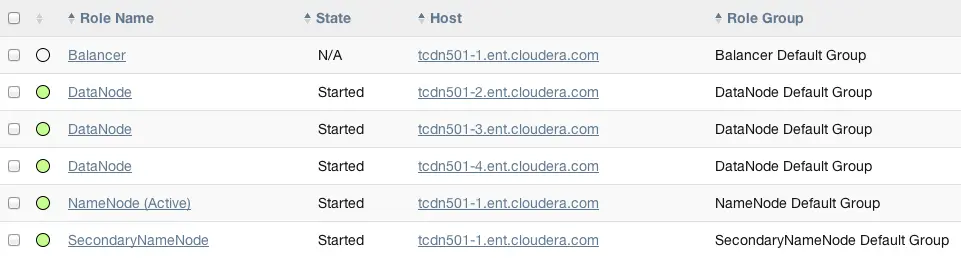 Cloudera Manager 支持角色组配置,这是一种将配置分配给一个角色组的机制。这样,组中各个角色都会继承这个配置。例如,在一个拥有不同性能主机组成的集群中,因为性能不同,我们可以为部署在其上的 Datanode 构建不同的配置组(性能好的配置高点,差的配置低点)。在性能高的一些主机上,我们为 Datanode组 运用配置A,性能低的一些主机上,我们运用配置B。