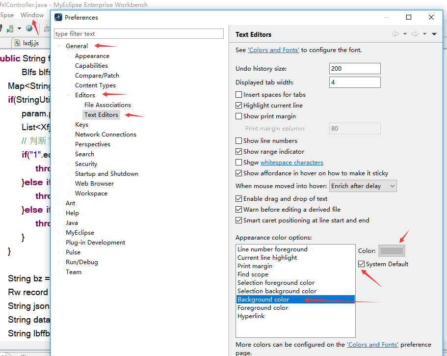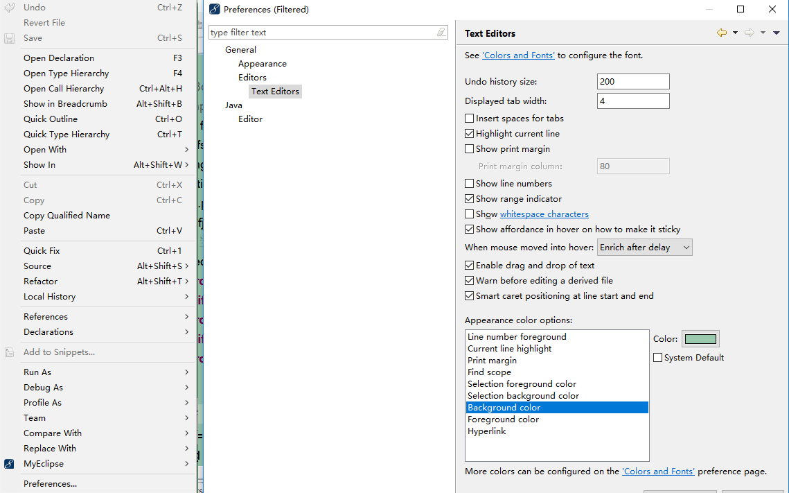 一个:window -> preferences: General -> Editors -> Text Editors