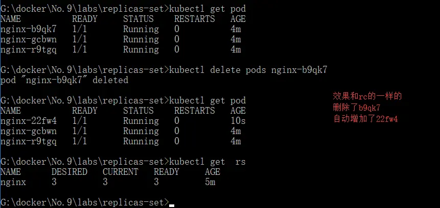 通过delete pods 的方式删除一个容器,立刻就有一个新的容器起来