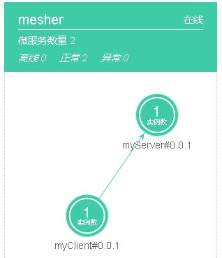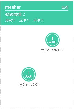 3.6 登录华为云CSE服务治理界面,可以看到mesher已经为我们注册了两个微服务:
