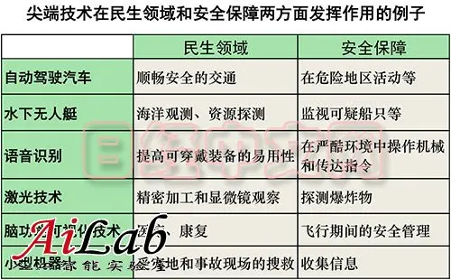 尖端技术在民生与防卫领域发挥作用的例子。