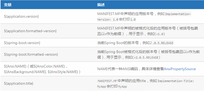 注 如果想以编程的方式产生一个banner,可以使用SpringBootApplication.setBanner(…)方法,并实现org.springframework.boot.Banner接口的printBanner()方法。