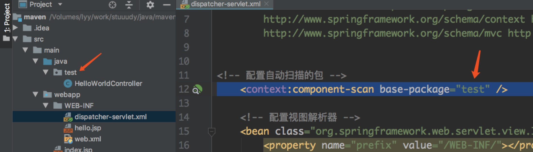 org.springframework.web.servlet.PageNotFound.noHandlerFound No mapping found for HTTP request with URI [/helloworld] in DispatcherServlet with name 'dispatcher'