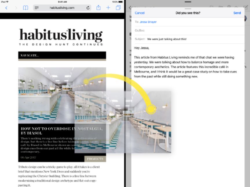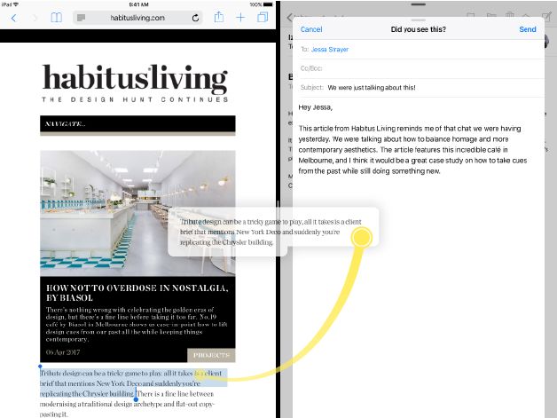 使用视觉提示识别潜在目的地并预览删除内容的效果。突出显示,插入点指示符和动画都是识别可能目的地的好方法。当内容被拖过时,视图可以巧妙地闪烁并改变颜色,或者段落可以分开以为拖动的图像腾出空间。