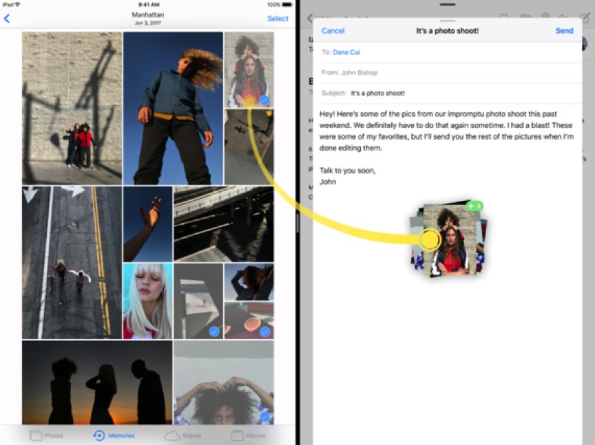 当用户无法立即撤消拖放时,请考虑提供一种微妙,直观的退出方式。例如:共享应用程序可能会在发布已删除的内容之前显示中间份额表,此共享表可以提供一种方式来提供状态消息等附加内容,同时还提供取消按钮。将照片拖入共享照片流时,照片会出现此行为。