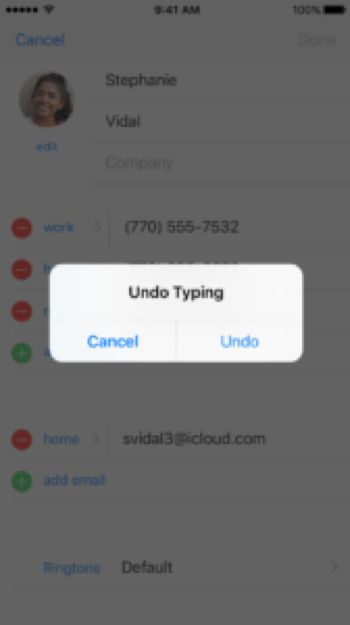 很多的应用都允许用户通过摇晃设备来撤销或是重做某个操作,比如:打字或是删除。当该撤销和重做通过摇晃被触发时,会出现一个提示框,询问用户是要撤销(重做)操作还是什么都不执行。