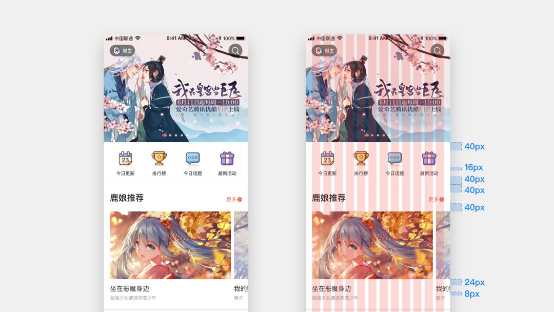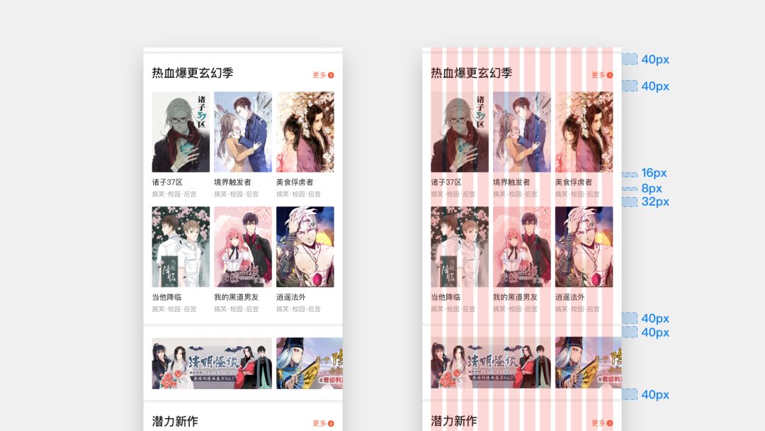 这里我们以网易漫画APP的首页为例,利用8px、12列网格系统来一次设计实战。