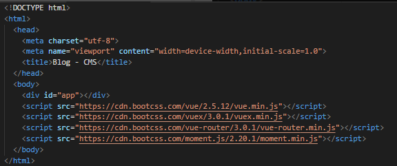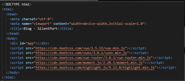 对vue、vuex、vue-router、vue-moment采用cdn引入,此外客户端还可以引入highlight的cdn,但管理端不需要。因此,需要两份不同的模板html,配置分别如下: