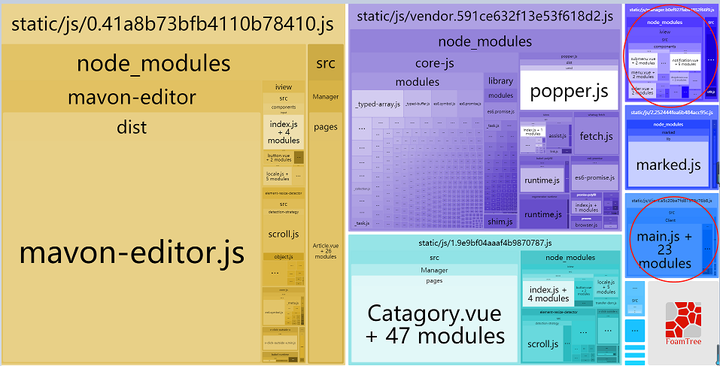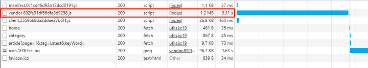然而,这里可以看到manage这个文件还是很大,主要是包含mavon-editor,而它只需要在article路由中会用到,同样的,client中的marked也只会在detail路由中用到。那么,下一步的优化在于如何让文件按需加载。