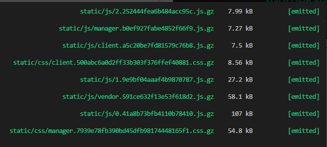 经过上述的一系列处理后,多页面之间的代码已经解耦,自己的依赖的大文件也成功被分离。这个时候,页面加载已经明显快了很多。但是可以看到,mavon-editor这一个依赖就有250多kb,不管它被打包到什么位置,都会影响对应页面的加载。接下来我们开启gzip压缩进一步缩小依赖的体积。