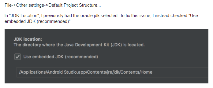 Gradle sync failed: Could not run JVM from the selected JDK.”