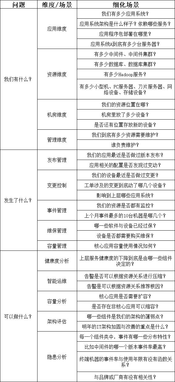 那我们到底需要CMDB帮我们解决什么问题?在不区分行业、不区分企业规模的情况下,通常来说CMDB主要是要帮我们回答如下三个问题:
