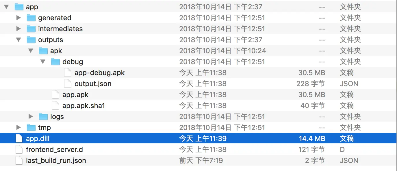 首次启动应用后,生成的完整的业务代码文件app.dill,在设备上体现为kernel_blob.bin;