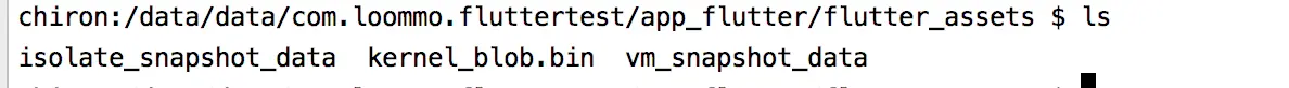 同时,通过adb shell检查,发现设备中/data/data/com.loommo.fluttertest/com.loommo.fluttertest/app_flutter/flutter_assets下,生成三个文件;