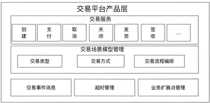 平台产品层为了应对不同的交易场景(一口价,拍卖,货到付款,预售…)将原子的基础能力编排成满足不同场景的解决方案,以服务的方式透出出去。