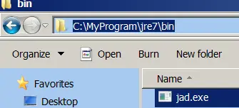 4. 把JAD.exe放到JRE目录的bin文件夹下面。