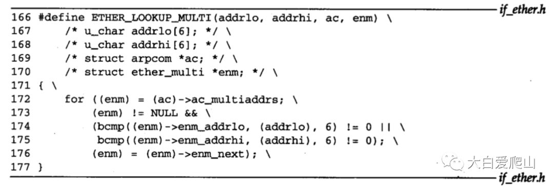 图6中的ETHER_LOOKUP_MULTI宏,搜索某个ether_multi结构,找到地址范围。