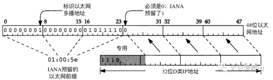 因为以太网支持多种协议,所以要采取措施分配多播地址,避免冲突。IEEE管理以太网多播地址分配。IEEE把一块以太网多播地址分给IANA以支持IP多播,块的地址都是以01:00:5e开头;以00:00:5e开头的以太网单播也分配给IANA。