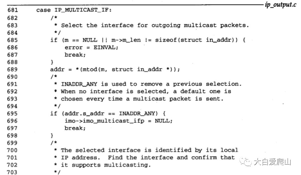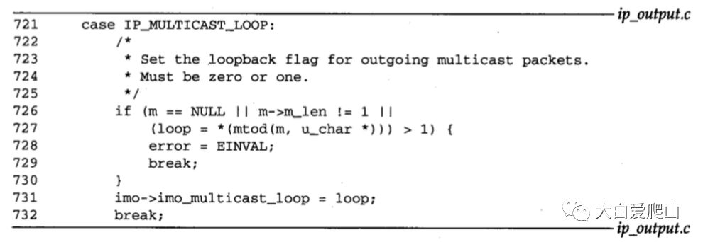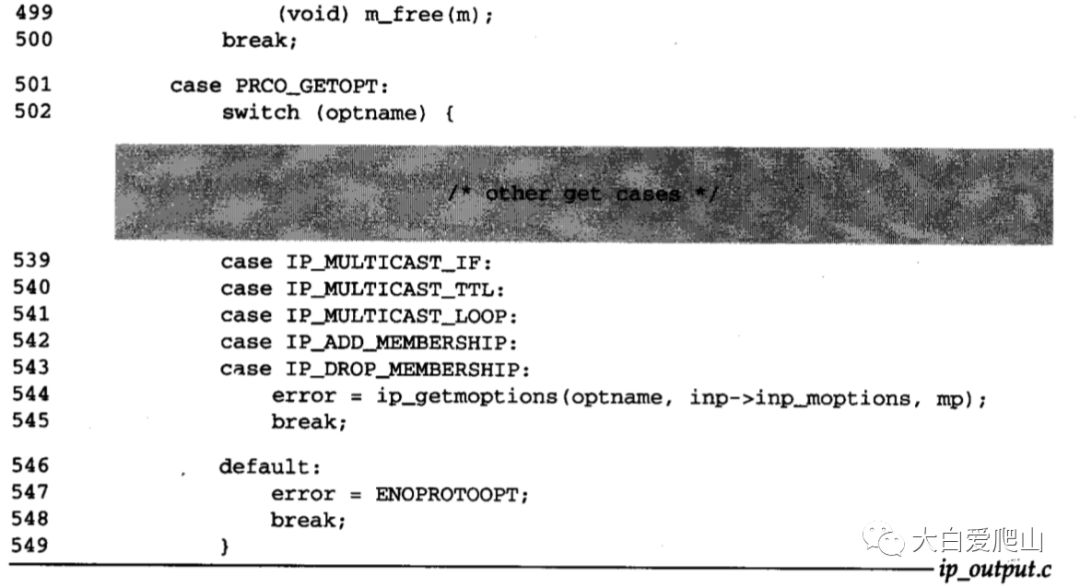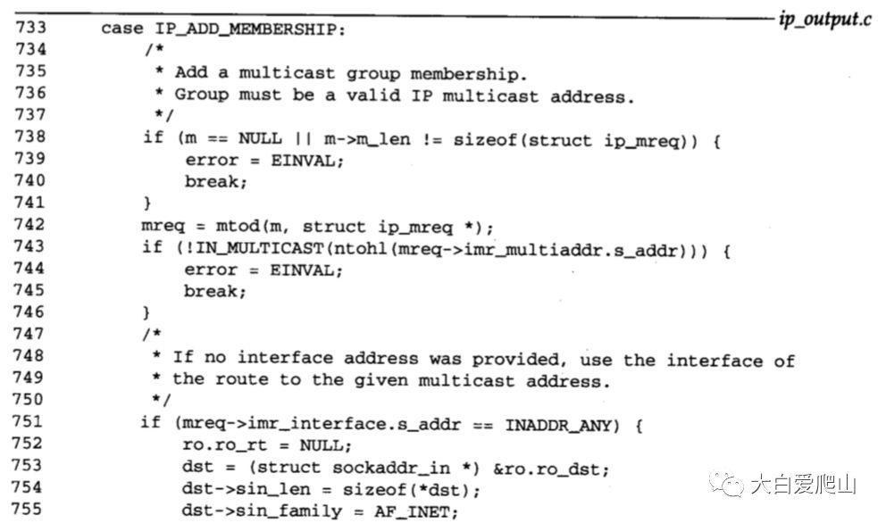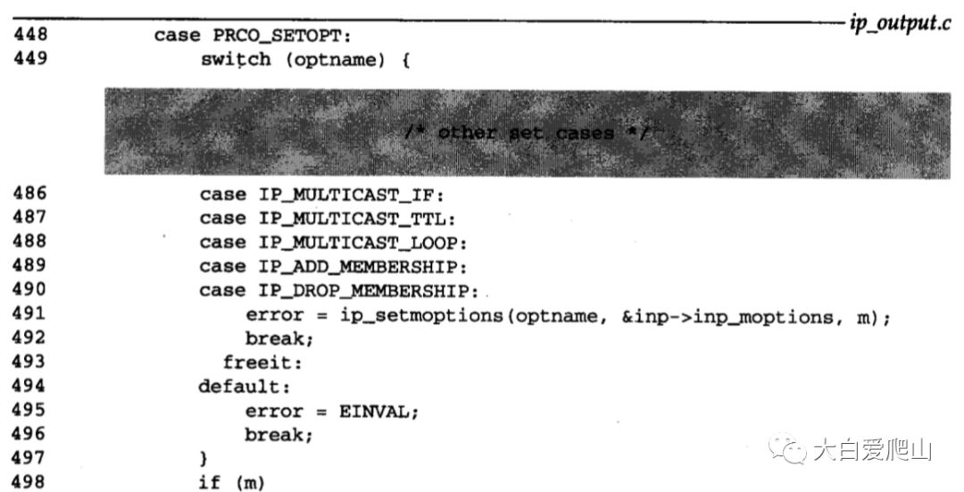 在概说《TCP/IP详解 卷2》第8章 IP:网际协议图25中看到了ip_ctloutput函数的整体结构。图12显示了 改变和检索多播选项有关的语句。